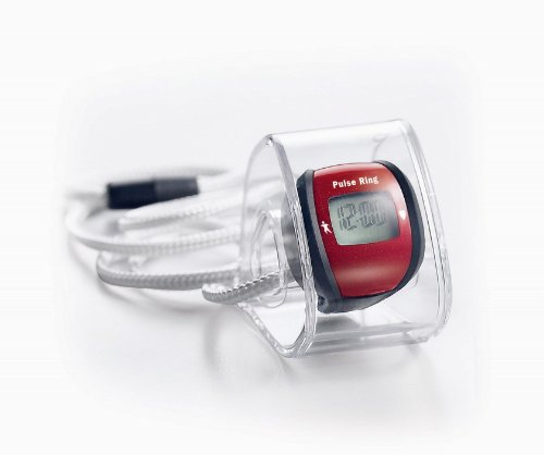Heart monitor ring tracks heart rate during exercise and daily routines. Not bulky, like oversized arm monitors. FDA approved unit features stopwatch, continuous heart rate display (30-250 beats per minute), a maximum/minimum heart rate target zone and ten hour count up timer.